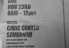 SAVANNAH, GA (November 22, 2017) – SCMPD has learned about a fake flyer promising money to families on Thanksgiving. The flyer states that refugee