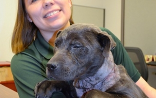 SAVANNAH, GA (January 30, 2015) Animal Control Officer Christina Sutherlin shows off Grace, a 7-month-old lab/bull mix puppy who was rescued by