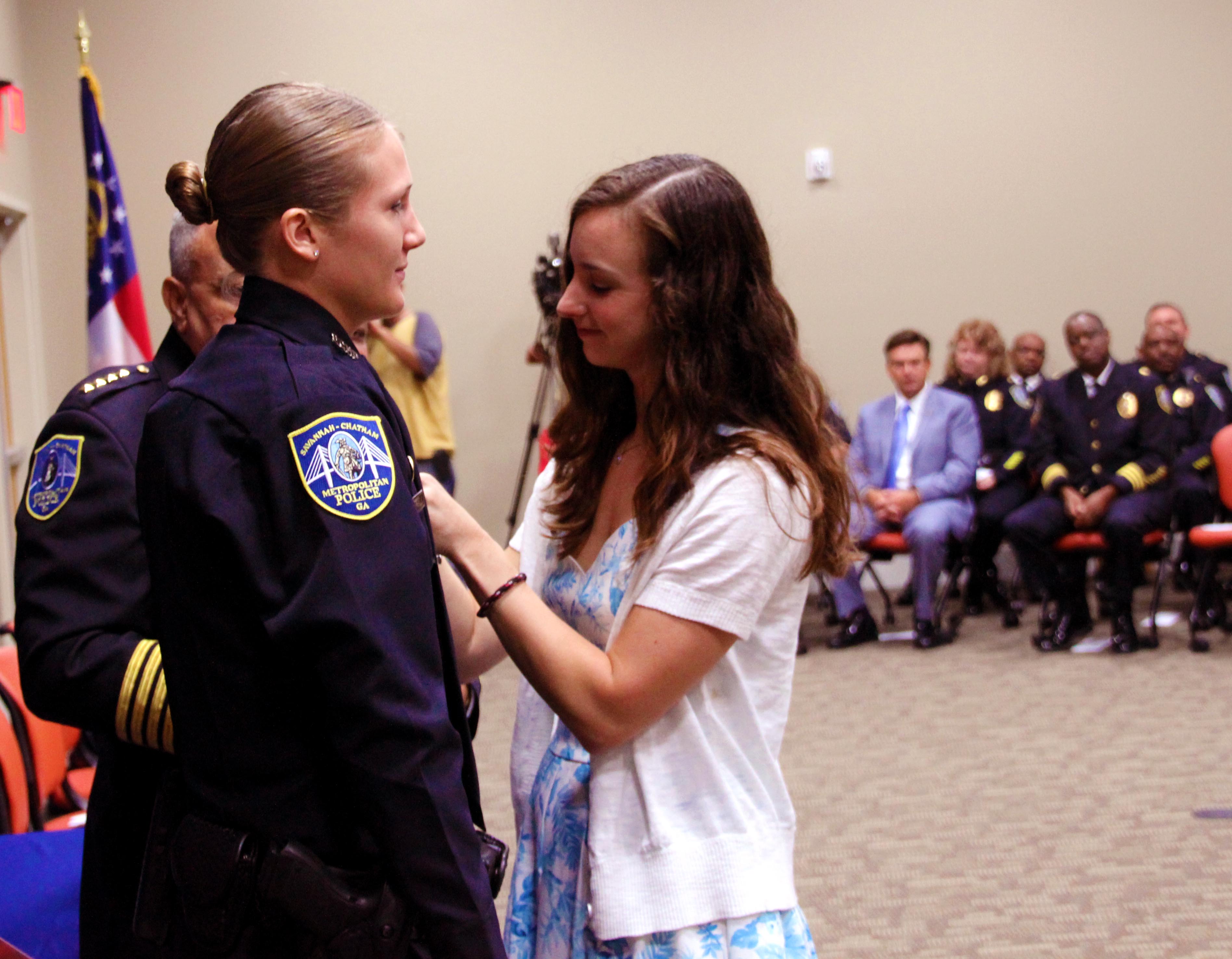 SAVANNAH, GA (August 7, 2015) –Ten new officers were officially sworn in as Savannah-Chatham Metropolitan Police officers at a Badge Pinning Ceremony this morning at the SCMPD’s new Professional Development Center.